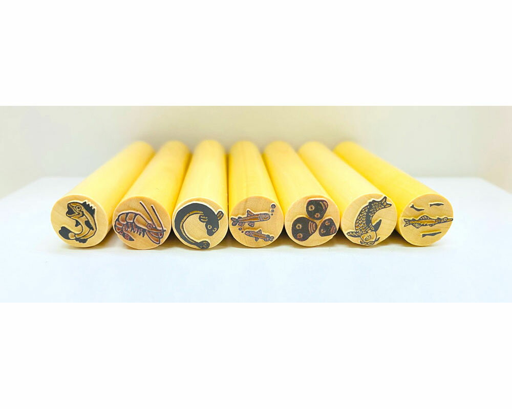 宍道湖で獲れる代表的な七種の魚介類【宍道湖七珍】をかわいいイラストはんこにしました! スタンプカードに押したりお葉書に押したり、色を変えればカラフルなスタンプとしても楽しめます! すべてスタッフが描いたイラストを元に作成しています。 七種類並べて押しても、一つずつ押してもかわいいですよ! 宍道湖七珍