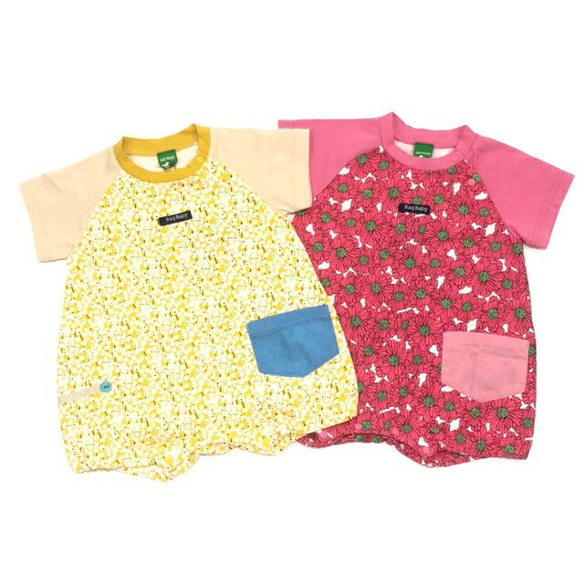 ※20%OFFセール※【2023春夏】ラグマート(RAG MART)ポケット付き袖切替ショートオール(70cm、80cm)で、