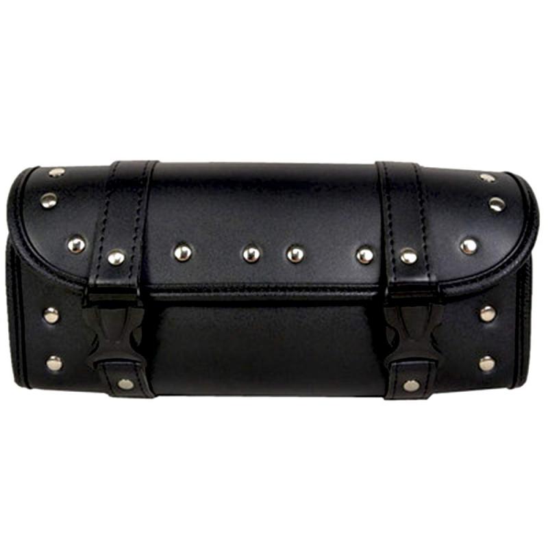 ZSADZS ツールバッグ自転車ユニバーサルツールボックスアクセサリーツールバッグ防水ワゴンチャーム便利なラウンドブラック高品質の合成皮革製の2本の取り付けストラップ付きのオートバイ用サドルバッグ。クロームスタッド付きパニエサドルバッグ。これらはすべて耐候性があり、水や熱に耐性があり、排熱や雨による