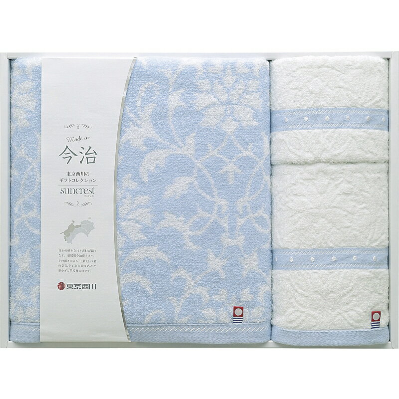 ■材質綿100%■原産国日本■箱サイズ/箱入重量30×40×6cm/0.7■セット内容バスタオル(60×120cm)・フェイスタオル(34×75cm)・ウォッシュタオル(34×35cm)×各1■ブランド名東京西川■送料について■送料 送料無料。但し、北海道・沖縄・離島を含む(一部配送不可地域)のご注