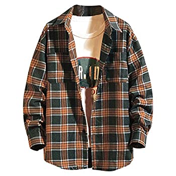【中古】シャツ メンズ 長袖 Hodarey メンズ 長袖 シャツ ゆるいメンズカジュアルチェック柄 ステッチ シャツ 学生 ブラウス 作業服 大きいサイズ カットで、