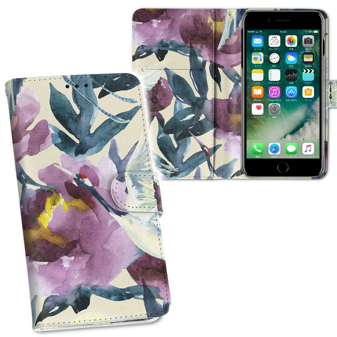 F-03K らくらくスマートフォン me docomo ドコモ f03k 両面プリント 裏表 内側 内面 スマホ カバー レザー ケース 手帳タイプ フリップ ダイアリー 二つ折り 革 フルデザイン 012162 花 鶴 鳥で、