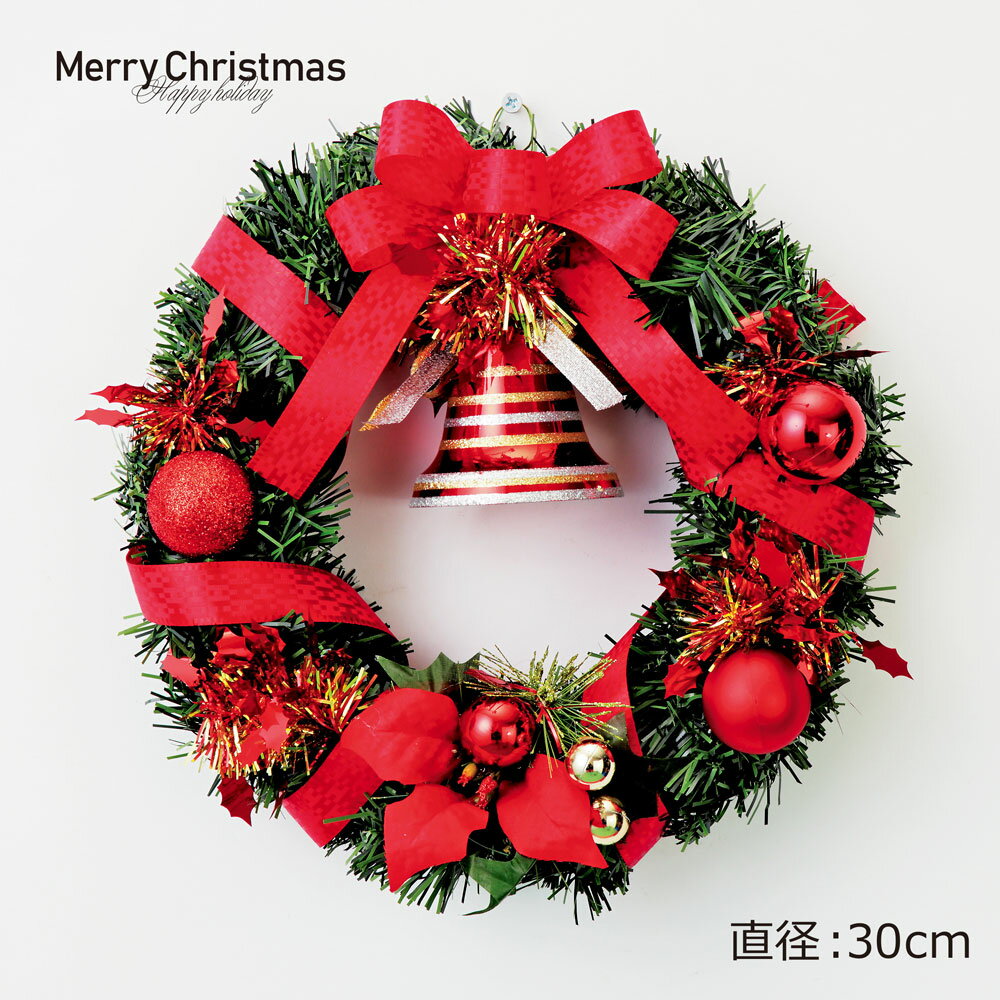 クリスマスリース レッド 30cm 手作り リース クリスマス 壁 壁掛け リース 飾り 装飾 ディスプレイ 店舗装飾 インテリア デコレーション 可愛い かわいい おしゃれ 赤 玄関 サンタ サンタクロース ベル リボン Christmasで、