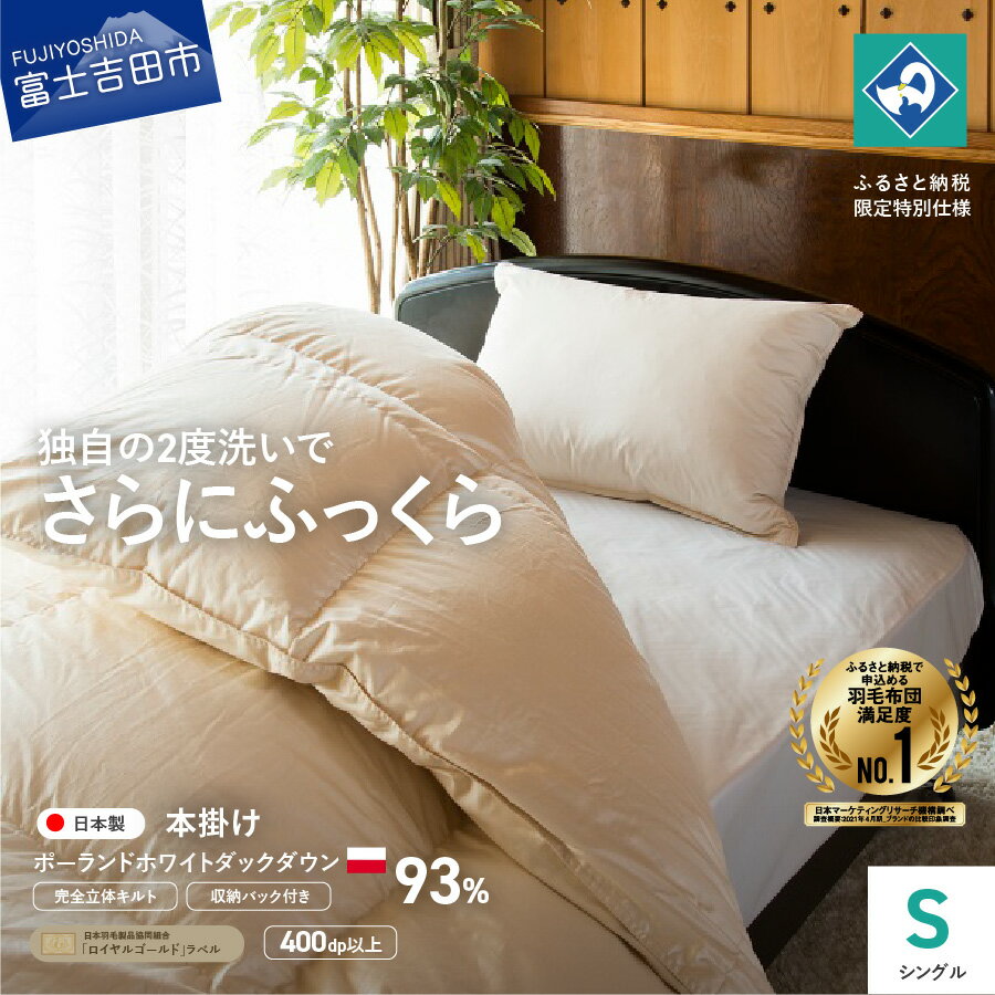 【ふるさと納税】 羽毛布団 掛け布団 シングル 本掛け 日本製 完全立体キルト ポーランド産ホワイトダックダウン93% きなり色 収納袋 コロナ支援 訳あり ふとん 布団 掛け 掛けふとん 寝具 国産 ふるさと納税限定 【創業100年】で、