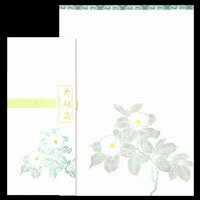 日本の伝統的な文化や、美しい四季折々の自然風物を主題にして創作された優雅な便箋セットのシリーズです。 白椿(しろつばき)の絵柄を木版印刷で一色一色を丁寧に刷り重ねた流麗優美な和紙による便箋です。 裏表に縦書き用・横書き用の罫線が入った厚手の紙が同梱されておりますので、そちらを和紙の下敷きにして頂くこ