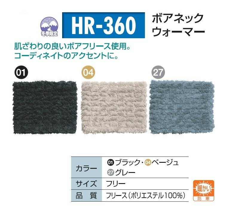 ■商品概要カラー:ベージュサイズ:フリー■詳細説明【素材】フリース(ポリエステル100%)肌触りの優れたボアフリースで、首周りから鼻先までを防寒してくれ、バイクに乗らない時でもコーディネートのアクセントに。■商品番号HR-360■JANコード4532838360224
